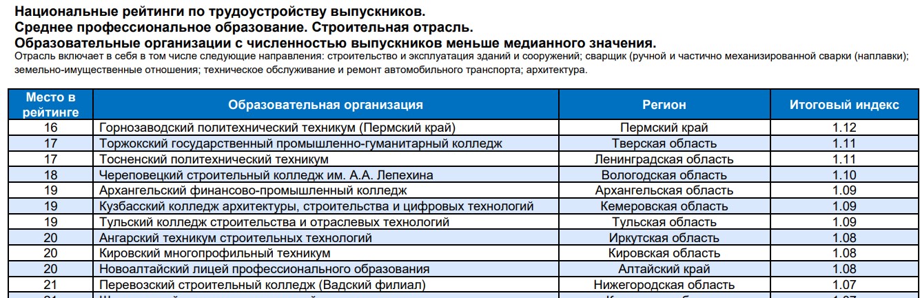 Рейтинги рассчитаны по отраслевому принципу (для среднего профессионального образования).