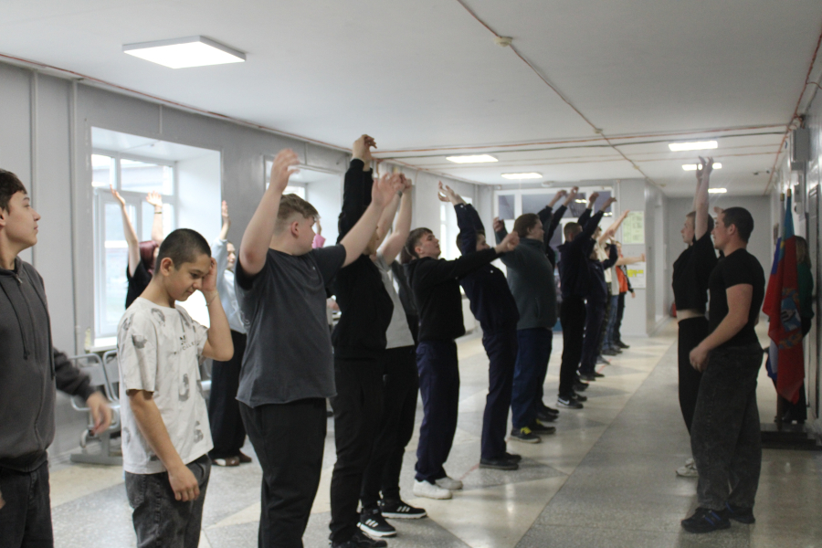 Студенты приняли активное участие в комплексе физических упражнений под энергичную музыку, получив заряд бодрости и хорошего настроения.